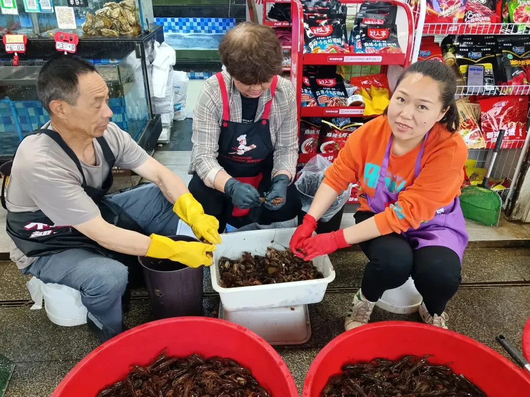 不同体型的虾,吃起来有什么不同?魏尚明介绍,虾肉口感没有差别,市民选购时可依据食用部位来决定,目前小虾销量最高。10斤小虾可以剥出2~3斤尾肉,10斤中虾也只有这么多尾肉。如果只吃尾肉,小虾性价比最高,如果想吃虾黄,可以选择中虾和大虾。9钱以上的“炮头”多为宴请和高档餐饮店选购。泽宇海鲜行老板娘胡卫敏是湖北人,弟弟在湖北承包了虾塘,每天从老家打包发货鲜虾到成都来,目前一天进货二三万斤。胡卫敏说,虾的折损率随时间上升,因此到了下午会折价处理,早晨卖十多块的中虾,下午只卖七八块钱。周末客人多,顾客的杀价空间更弱。“零售客户几乎都是年轻人,每天50位以上。”