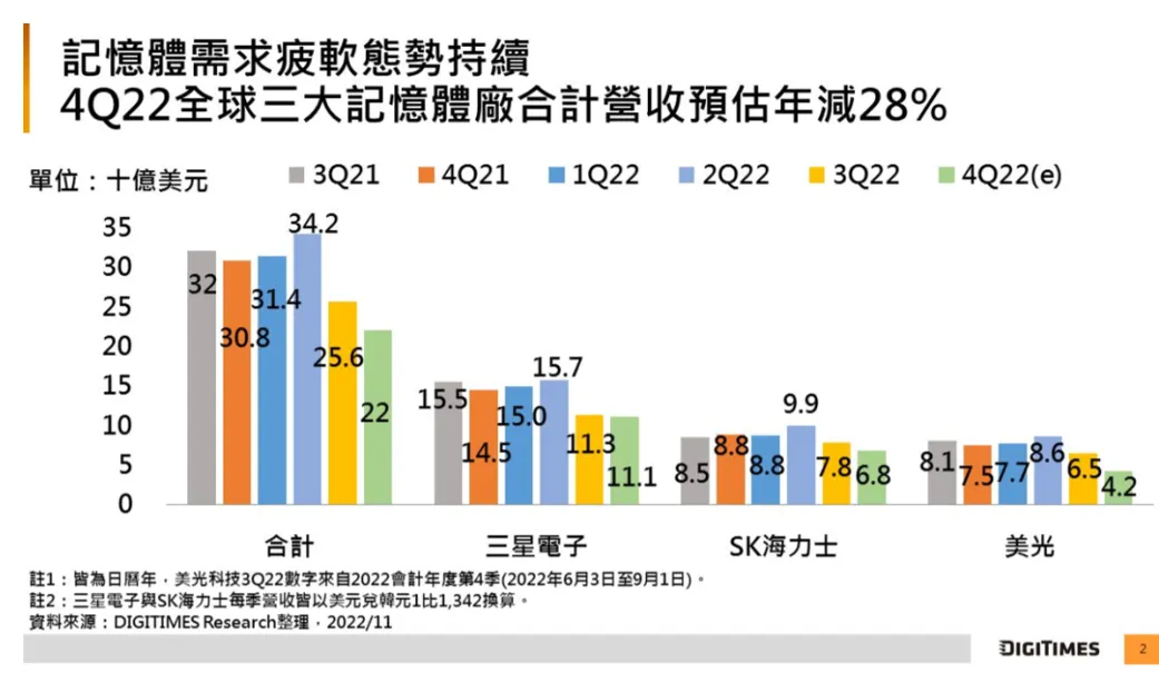 以消费电子中的手机市场为例,一面是国产手机厂商清仓去库存,另一面是苹果成为全球前五大智能手机品牌中唯一一个年同比增长的品牌。就算是苹果自己,手机销量也在分化。iPhone 14系列手机,销售呈现两极分化,高阶Pro版本卖到缺货,平价款iPhone 14在市场上大幅降价,苹果A15、A16芯片的砍单比例高达4-5成。再看一面是中低端电视价格一路向“白菜价”靠齐,另一面是高端电视价格不断走高。三星在价格超过2500美元(约合人民币17389元)的高端电视市场份额提升到51.1%,75英寸以上的超大型电视市场份额占据37.5%。另外还有消费电子芯片,低端走量芯片与高端芯片的行情分化;消费电子芯片与汽车、工业等芯片的行情分化;内贸与外贸的分化……市场降温后,处处可以看到分化,分化的背后是无形的手对市场疯狂后的审视、思考和干预。当下以智能手机、个人电脑,电视等各种音视频设备为主的消费电子半导体周期性衰退最显著。衰退的同时存在分化,最明显的表现是价格。流通量大的芯片在现货市场跌价,如DDIC、MCU、PMIC、存储芯片,出现拦腰降价,雪崩式降价……芯片价格从去年的非理性逐步回归常态。CPU,英特尔新价格从今年10月2日开始生效,其中台式机和笔记本处理器的价格将上涨10-20%,英特尔想通过占领更多份额,并提高其处理器的平均销售价格(ASP)来克服终端市场的疲软。SoC,高通、Marvell都传出涨价,高通新合同价格将上涨4%,2023年1月开始需交付的订单价格将上涨近10%。Marvell自2023年1月1日起,其产品将涨价10%。与Wi-Fi 5 、Wi-Fi 4 SoC相比,Wi-Fi 6 SoC的价格相对稳定,由于Wi-Fi 6 SoC的需求比较强劲,Realtek、高通等供应商们无法满足所有订单的需求,而博通自2023年1月起网通芯片的价格将上涨6%-8%。高端5G基带芯片增长,Strategy Analytics报告显示,2022年Q2,5G基带芯片收益同比增长40%,出货量增长16%,价格较高的高端和高阶5G芯片的组合增加了ASP,尽管市场环境疲软,报告认为鉴于代工成本的增加,基带供应商们需要行使定价原则,言下之意就是还能涨。高端芯片占整个消费类芯片大类的比重并不高,而出货量大的消费芯片一排齐跌倒,导致消费类芯片整体表现在逆风中凌乱。相似的分化情形还发生在芯片现货市场上,国内芯片贸易特别冷清,需求观望多,销售们满手库存急跺脚,个个主动出击拼价格、拼服务,不少芯片价格持续下跌。反观外贸,订单量没有什么锐减,只是回归疫情前的常态,一直有需求,也不用讲求太多交际和人情世故。市场悲观,一部分消费类芯片在“逆风”涨价,主要还是因为整体需求跌无可跌,不能更差,通过涨价来拉升营收。而大部分消费类芯片如市场上流通的DDIC、MCU、PMIC、存储芯片在市场上跌不停,需求锐减。反映在市场上就是,量大价格低的芯片在跌价,量少价格高的芯片在涨价,整体来看芯片需求总量变少了。芯片按照不同应用市场,主要分两类,一类是消费类芯片,主要走量,用量大,流通广,比如大到8K电视,小到一部手机都要用到的显示芯片。另一类应用在汽车、工业等场景,需符合相应的指标和参数,用量较小,但单位价值量较高,如汽车MCU。目前整个芯片行情呈现消费类跌倒,但汽车、工业等较为坚挺的景象。先来看看用量巨大的芯片:DDIC(显示驱动IC)、被动元件、模拟芯片、存储芯片。最先感知消费下滑的是面板显示驱动IC行业,面板价格2021年下半年到今年10月已连续15个月下跌,主流尺寸面板价格几乎腰斩,降价压力来到DDIC上。奥维睿沃(AVC Revo)数据显示,今年三季度DDIC价格降幅在5%-10%,而本轮价格下降周期仍将持续。消费电子整体不行,针对细分市场,Mini LED屏幕集体“上车”,LED驱动IC厂纷纷布局Mini LED驱动芯片,如今年联咏车用驱动IC出货远优于其消费性产品线表现。被动元件出货量大,全球MLCC龙头村田,客户不乏iPhone、三星与大陆手机品牌,在智能手机产业与消费电子产业有指向标的作用。村田已多次下调本财年的全球智能手机产量预期,社长中岛规巨先前示警,大中华区智能手机需求在今年内应该不会出现复苏征兆,甚至明年手机销售也将延续今年的下滑走势。全球第二大MLCC厂三星电机在菲律宾MLCC工厂的运转率已降至40%。而在汽车、工业领域,厂商们的高阶产品订单稳健,行业新一轮周期有望开启。都说模拟芯片比数字芯片抗跌,但今年与消费类电子沾边的模拟芯片,也躲不过严峻的衰退行情。消费类模拟芯片市场价回归常态,高端模拟芯片开始反映需求不振。模拟芯片龙头德州仪器继消费电子(24%)需求疲软后,其最大的下游应用(41%)工业类也开始需求不振。而在车规级模拟芯片方面,德州仪器Q3汽车市场依然强劲,营收约增长10%。存储芯片在半导体市场中恐怕最不被看好。WSTS 发布报告表示,2023年降幅最大的是市场规模占比两成多的存储芯片,预计将比2022年减少17%,拖累半导体市场整体增长。今年第三季度DRAM和NAND闪存合同价格环比分别下跌15%和28%,这两种芯片价格预计在第四季度和明年全年继续下跌。三星电子曾表示,手机存储芯片库存较高,正在努力去库存。全球存储芯片制造商正在面临量价齐跌,通过降开支、缩减产能等度过寒冬。存储芯片巨头同时在不断加码汽车市场,推出相应汽车存储芯片,据美光估算,全自动驾驶汽车需要的DRAM、NAND是非自动驾驶车辆的30倍-100倍。上图显示,存储芯片巨头三星、SK海力士、美光自今年二季度营收不断走
