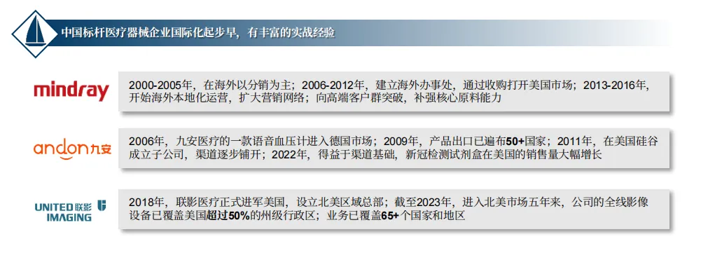 中国标杆医疗器械企业国际化起步早,有丰富的实战经验