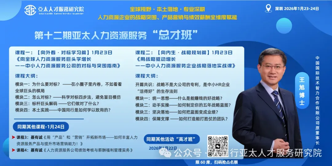 人力资源服务公司如何在对标中找出成功企业的独到之处?从而查找自身的不足。在不确定的时代中如何做战略规划?如何建立和健全绩效考核与薪酬福利体系?