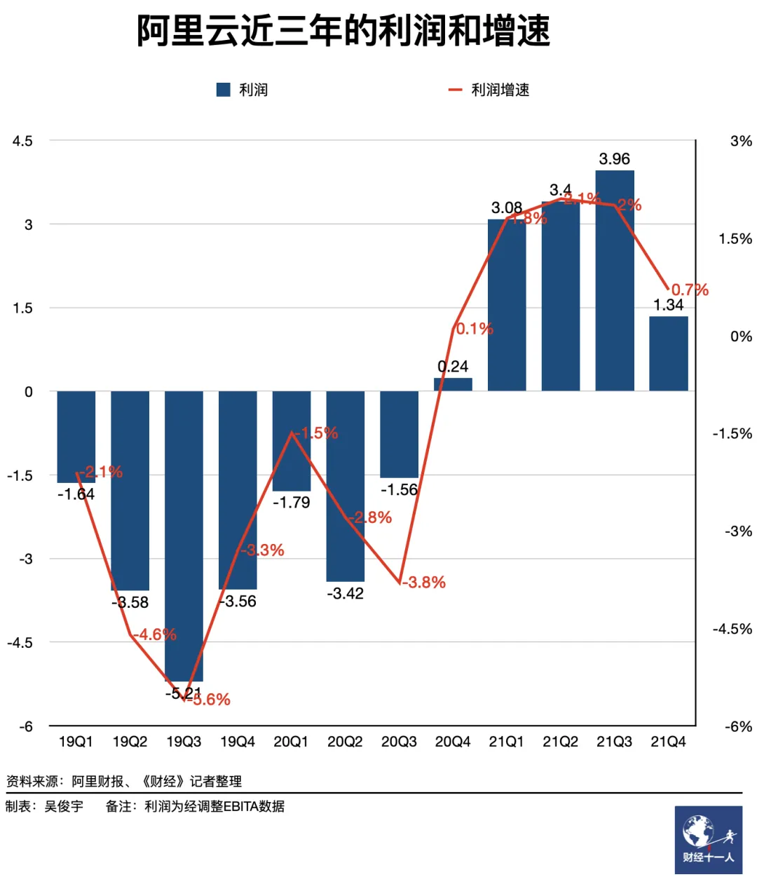 笔者统计阿里近四个财季(2021财年四季度-2022财年三季度,即2021年自然年)总营收为723.5亿元,经调整后的EBITA利润为11.75亿元。营收较上一自然年增长30%。财报后的电话会议中,投资者对阿里云提出了两方面问题。