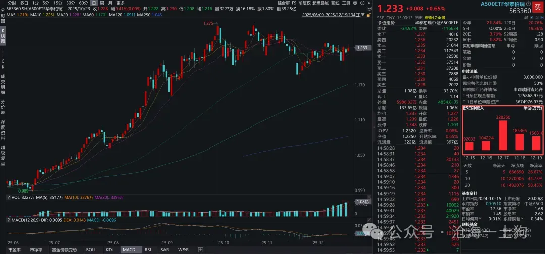 譬如,我们很容易观察到近期有大量资金涌入A500ETF,以华泰柏瑞的这只ETF为例,在一周之内净流入了86.6亿。
