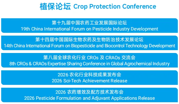 第二十六届中国国际农用化学品及植保展览会(CAC2026)将于2026年3月17-19日在国家会展中心(上海)举办,同期将召开中国国际植保展览会(CropProtection)、中国国际新型肥料展览会(FSHOW)、中国国际农化装备及植保器械展览会(CACE)、中国国际现代农业科技展览会(AgTech)及农化会议周(CACW)等分题展览及行业专题会议。