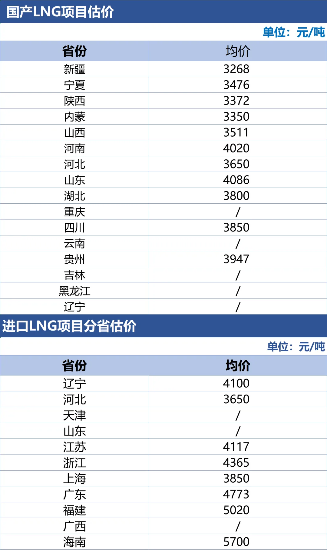 进口LNG现货含税价格