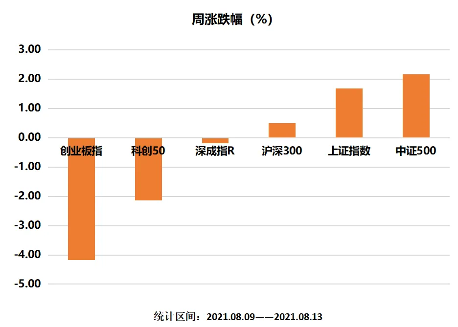 截止周五收盘,本周中证500指数表现最强,创业板深度回调4.18%,详细数据如下: