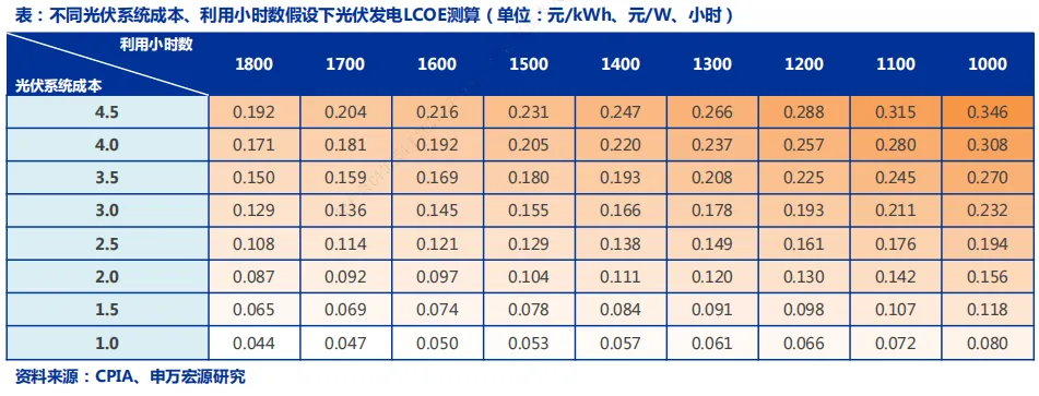 随着光伏制造成本下降,根据申万宏源的测算,到2060年光伏发电LCOE有望下降至0.08元/kWh,其发电成本远远低于传统火力发电。