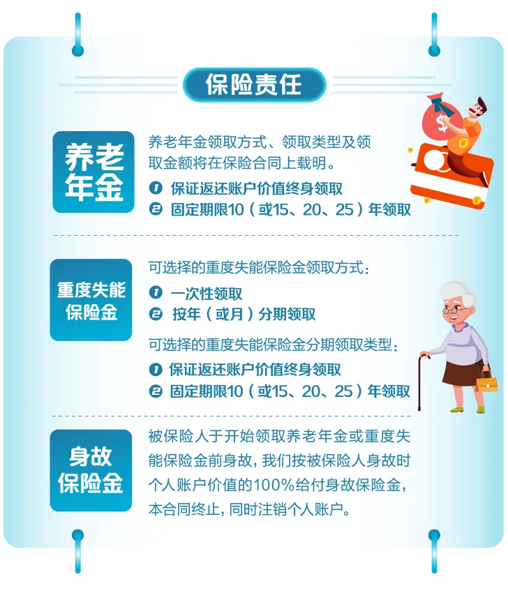 养老年金——您可以按照合同说明,选择终身领取,或者固定期限领取。