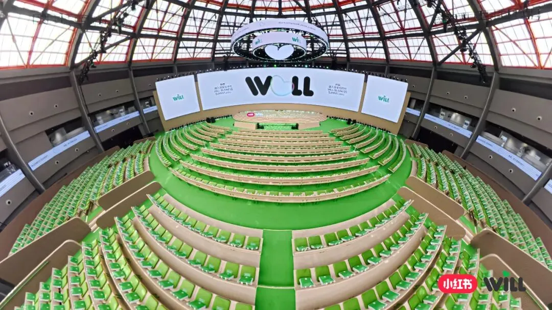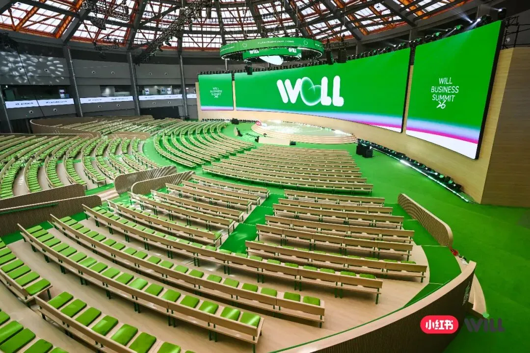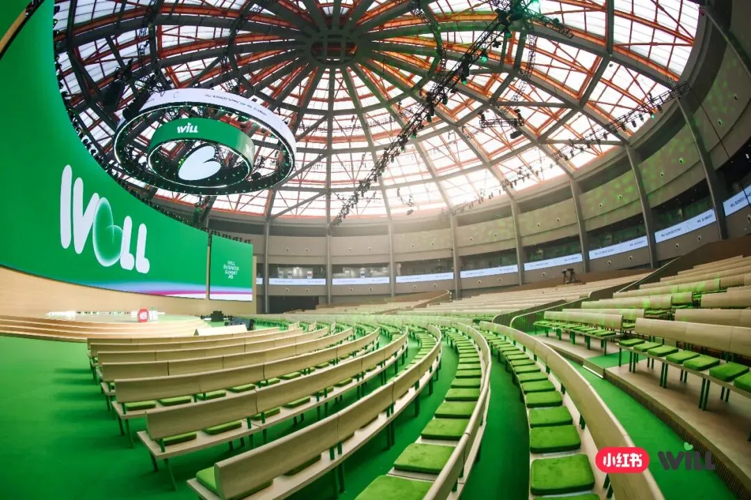 放在整个WILL商业大会的舞台体系里看,这套座椅排布并不是一个附属设计,而是空间叙事的一部分,它和穹顶一起,完成了一个很重要的动作,让场地,舞台,观众三者处在同一个叙事层级里,也正是这种整体感,才让这个亮场舞台看起来不是太亮了,而是站得住。
