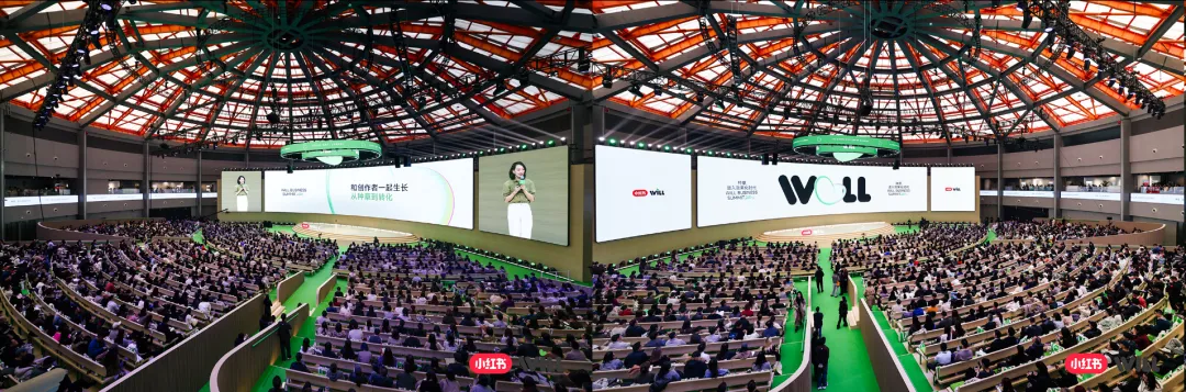 也正是在这样的背景下,再回头看今年的小红书WILL商业大会这次选择亮场舞台,并且放在上海西岸穹顶这样一个天光穹顶建筑里,重点中的重点是它选择了阳光还很足的下午三点左右开始,其实就很值得被认真讨论了,我没有去到现场,很多细节没有感受到,所有的感受都来自朋友圈照片和直播视频,如有错误品牌方请见谅。