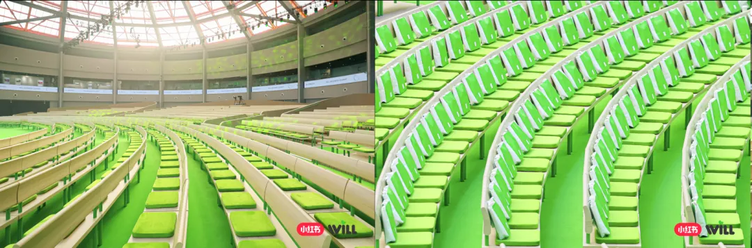一个是视觉秩序感,圆弧座椅让观众本身成为空间的一部分,而不是背景,人坐满之后,整个会场会自然形成层层推进的观众结构,这在航拍,广角,现场远景里都会非常好看,也非常稳定,它不是靠特效撑画面,而是靠秩序感撑住空间。