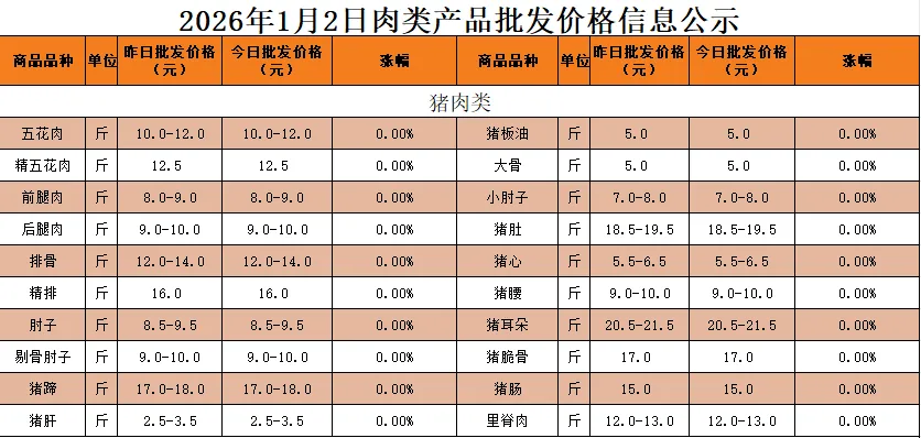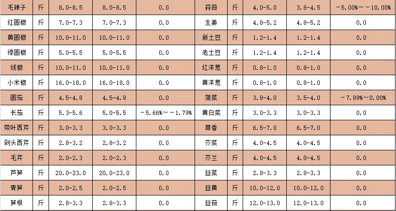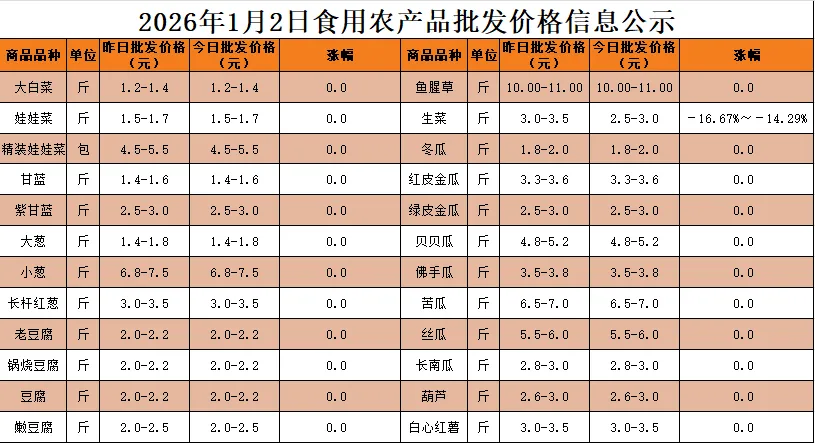 >巨龙物流港丨2026年1月2日蔬菜批发价格公示