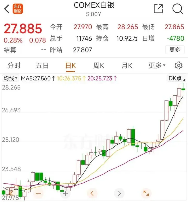 4月9日早盘,伦敦现货白银站上28美元/盎司,续创三年来新高