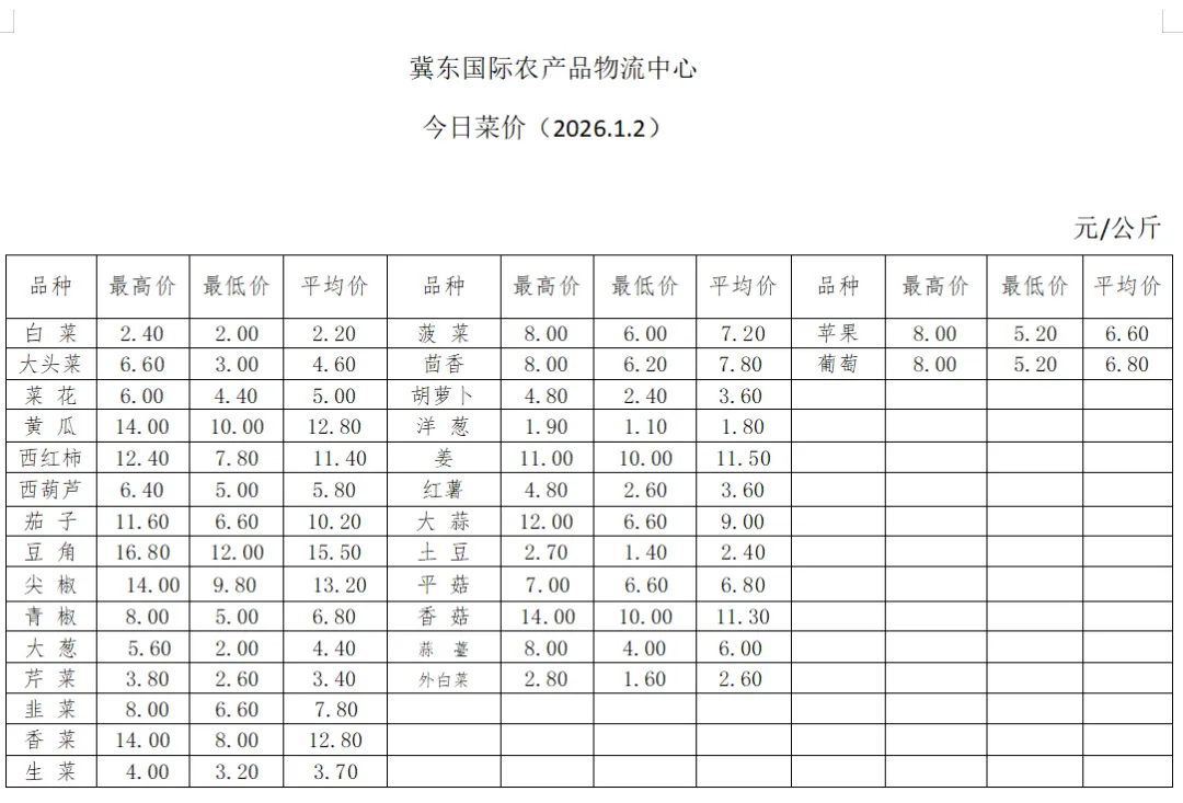 蔬菜类:大头菜价格继续上涨,最高批发价达6.6元/公斤,单日上涨0.2元/公斤,优质属性支撑采购需求不减。黄瓜市场交易活跃度回升,价格在昨日下滑后反弹至14元/公斤,较昨日上涨0.6元/公斤,供需衔接顺畅;椒类蔬菜供应量充足且价格上行,青椒最高批发价分别为8元/公斤,尖椒最高批发价14元/公斤,市场需求量大,稳居市场主导销售地位。叶类蔬菜价格同步下降,韭菜最高批发价分别为8元/公斤,芹菜最高批发价格3.8元/公斤,充足货源推动购销两端持续火热。值得关注的是,洋葱凭借丰富的营养价值以及物美价廉的价格,以1.9元/公斤的亲民批发价,成为当日蔬菜市场的“流量单品”,高性价比吸引各地客商竞相采购。其余蔬菜品类供需基本平衡,价格稳定,为市场平稳运行提供坚实支撑。
