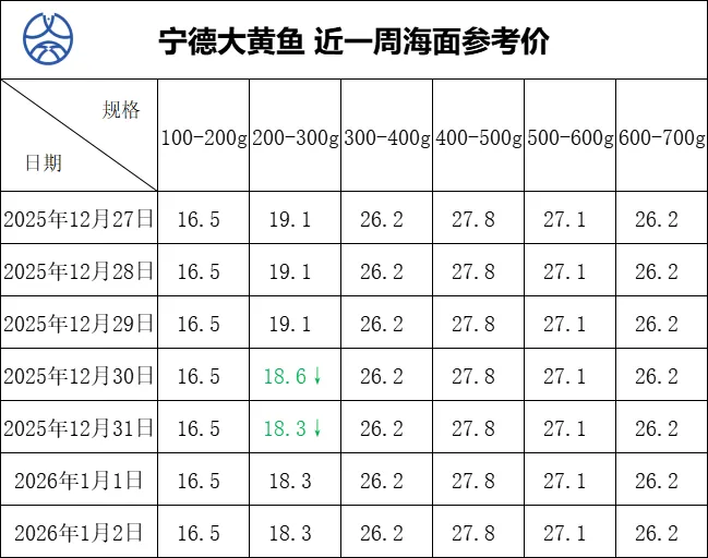 宁德地区大黄鱼海面收购价(冰鲜价)和