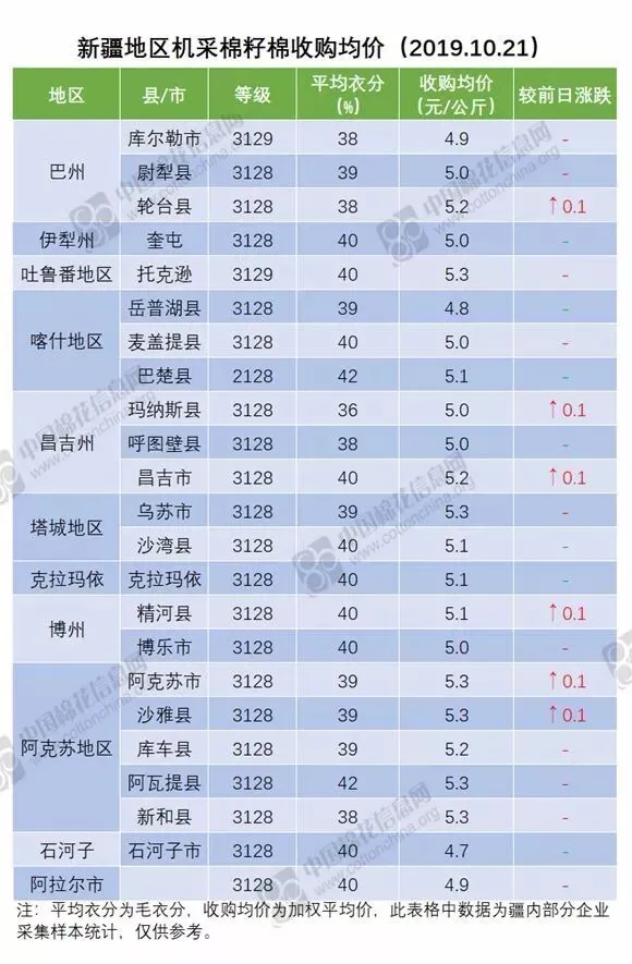 新疆地区籽棉收购价