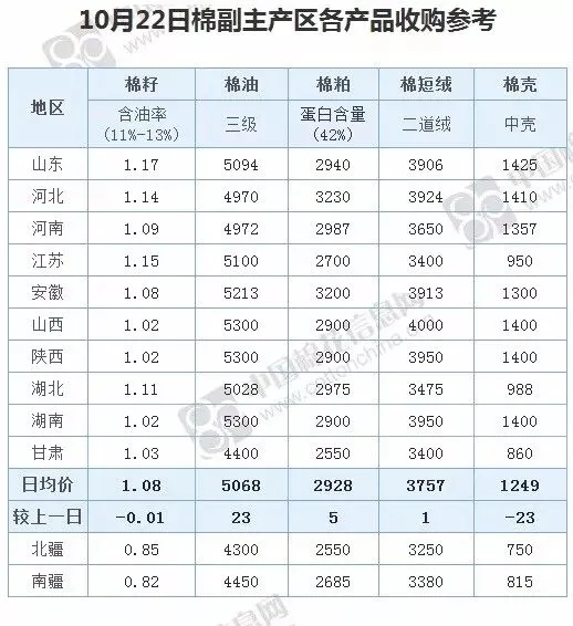 中国棉花收购参考价(10.22)