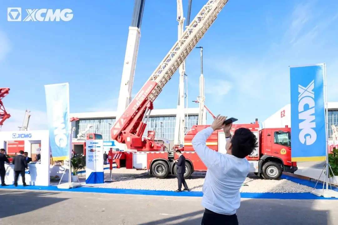 惊艳亮相的YT42G1云梯消防车自带光芒,傲然挺立会场,吸引了络绎不绝的观众。它灵动的身躯似乎蕴含着无限能量,随时准备在实战中秀出绝活,决胜高空。