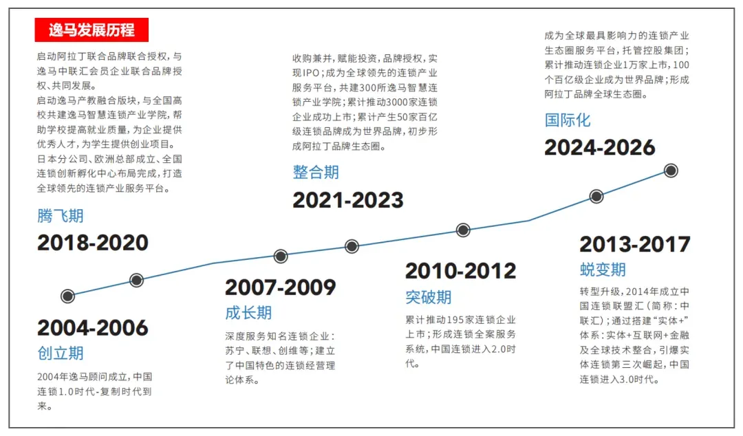 逸马创立于2004年,本着“善良正直,开放创新”的价值观,20年专注于连锁产业的研究,是集研究、教育、咨询、培训、联合授权、连锁联盟运营、数智化转型、连锁产业孵化于一体的全球领先的连锁产业服务平台,全方位战略陪跑优秀企业。