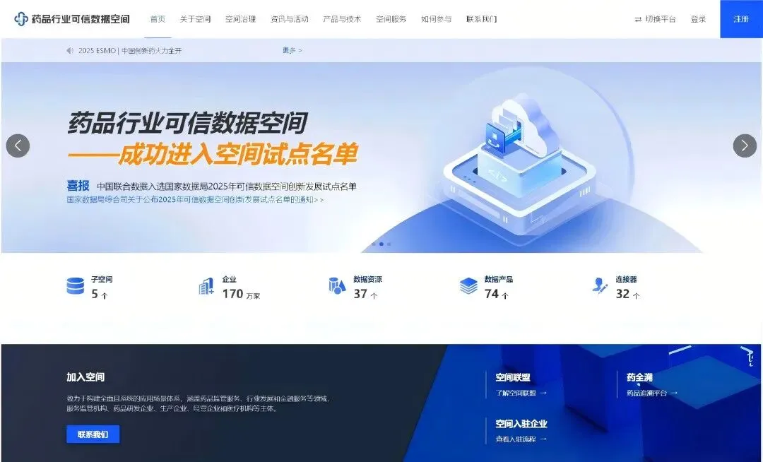 12 月 31 日,由国家药监局指导、国家数据局支持,中国联合数据建设运营的药品行业可信数据空间官网正式上线。
