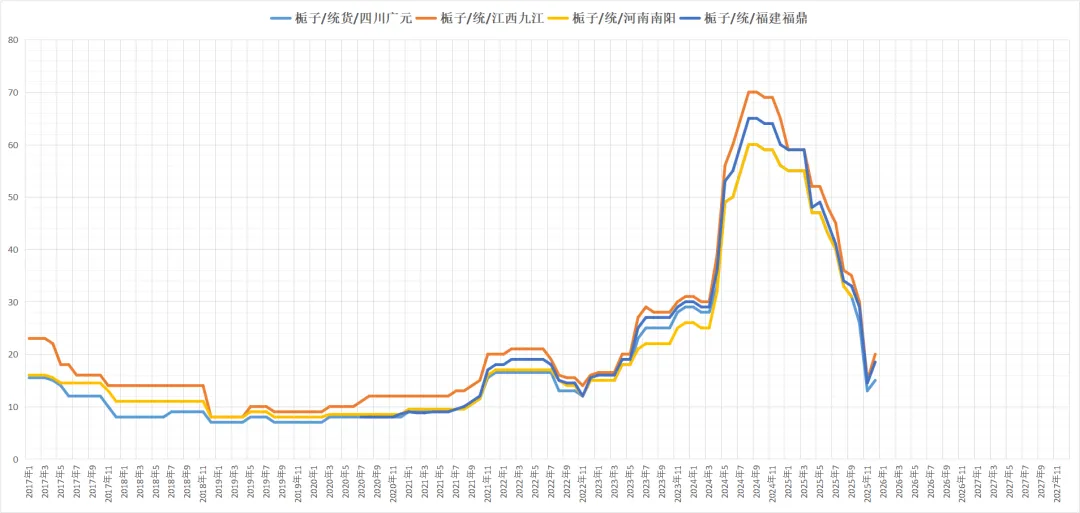 栀子当地可供货源有量,近阶段商家购货意愿不强,货源走动不快,行情暂保持稳定,现统货售价15元上下,饮片货价格在21元。