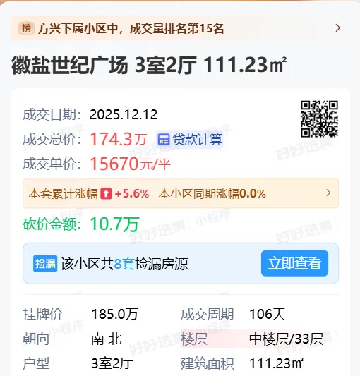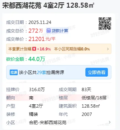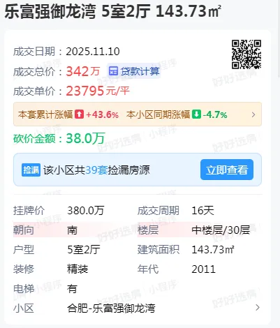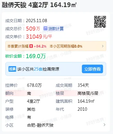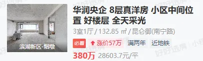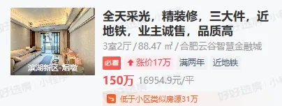 合肥云谷一套88平米房源,挂牌价涨了17万!