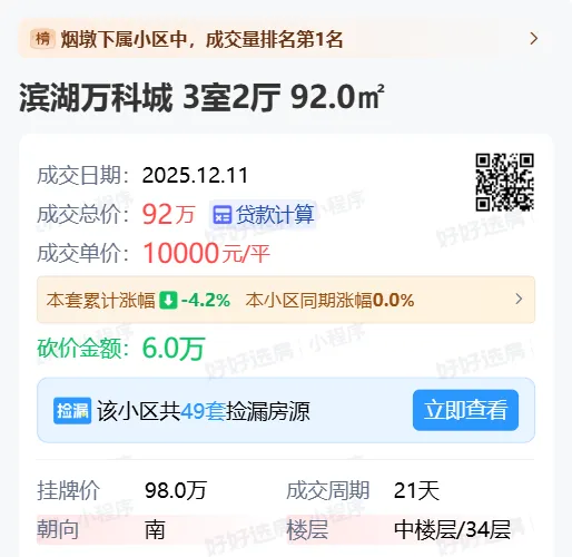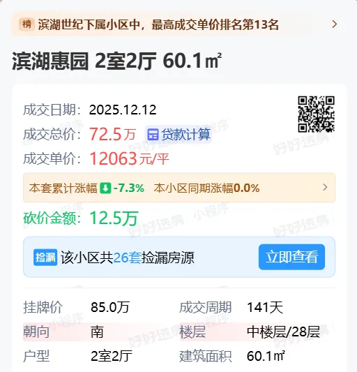 整体来看,滨湖二手房已处于止跌回稳状态,多个小区成交价已不再下降。