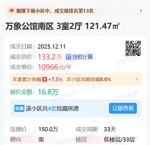 比如锦绣花城一套106平米的房源,挂牌价涨了68.3万!