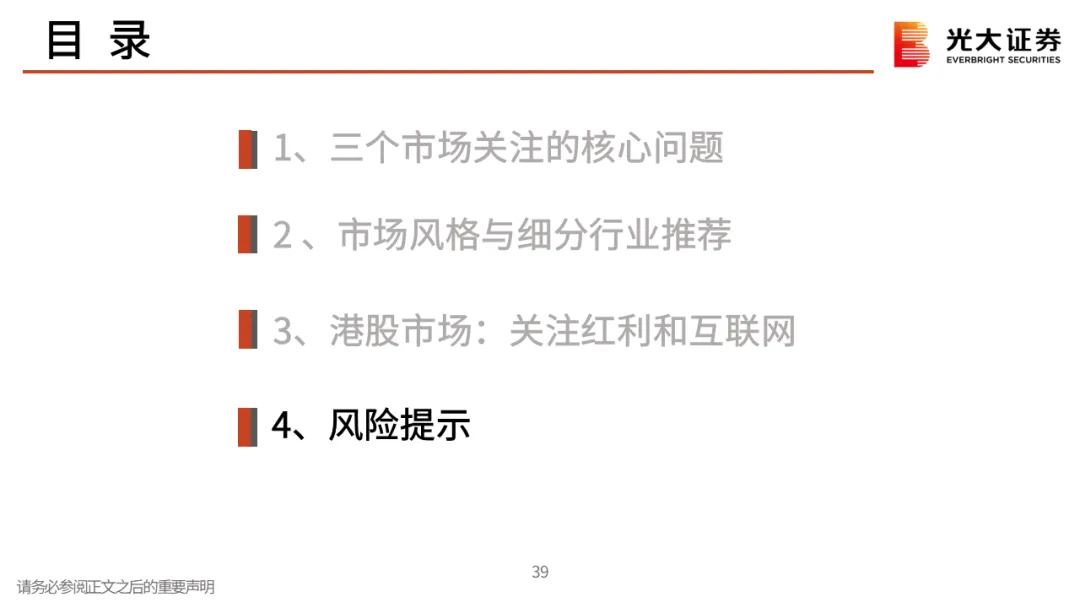 订阅号中所涉及的证券研究信息由光大证券研究策略团队编写,仅面向光大证券专业投资者客户,用作新媒体形势下研究信息和研究观点的沟通交流。非光大证券专业投资者客户,请勿订阅、接收或使用本订阅号中的任何信息。本订阅号难以设置访问权限,若给您造成不便,敬请谅解。光大证券研究所不会因关注、收到或阅读本订阅号推送内容而视相关人员为光大证券的客户。