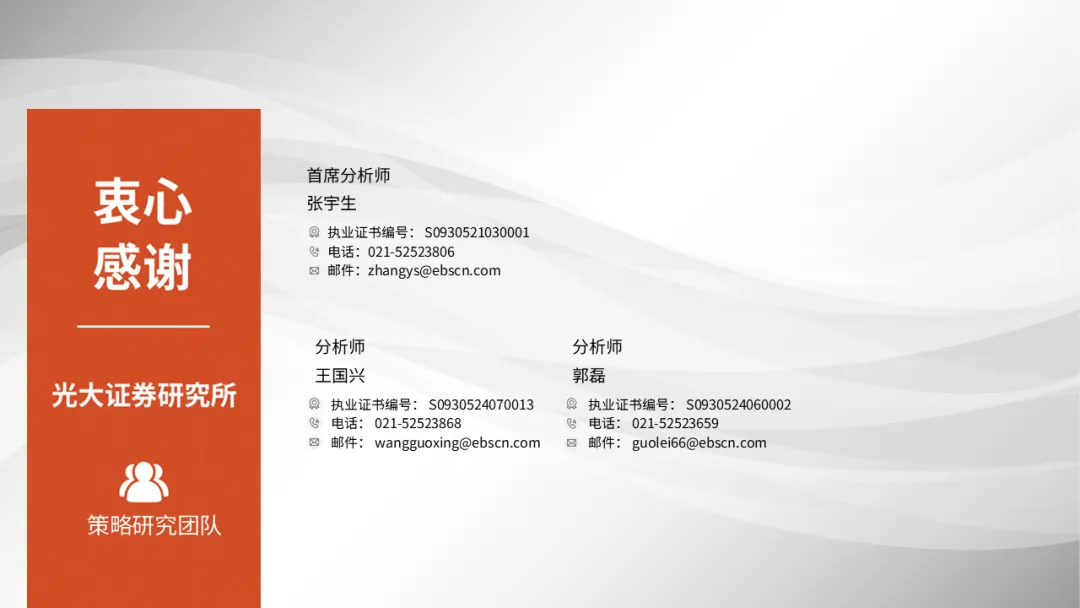 本订阅号是光大证券股份有限公司研究所(以下简称“光大证券研究所”)策略研究团队依法设立、独立运营的官方唯一订阅号。其他任何以光大证券研究所XX研究团队名义注册的、或含有“光大证券研究”、与光大证券研究所品牌名称等相关信息的订阅号均不是光大证券研究所策略研究团队的官方订阅号。