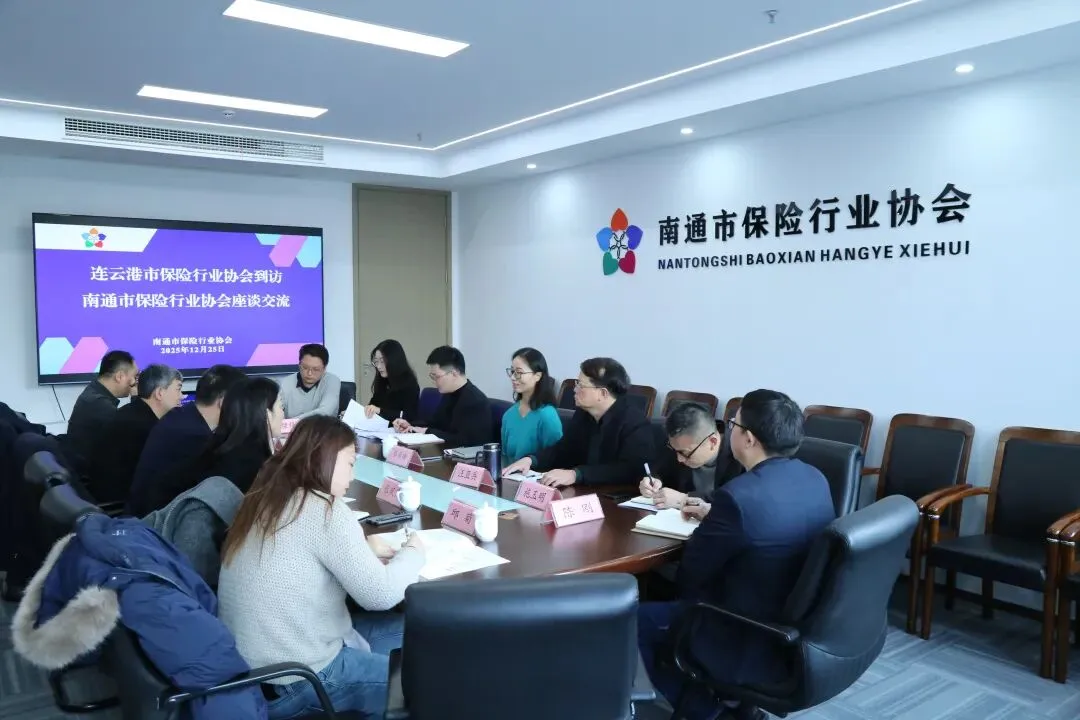 12月25日,连云港市保险行业协会党支部书记、专职副会长郄宗元,副秘书长(主持工作)孙竹松及内设部门负责人一行,到访南通市保险行业协会座谈交流。南通市保险行业协会秘书长汪亚兵、副秘书长曹宇坤及内设部门负责人参加座谈。南通金融监管分局保险监管科科长蔡希晞出席会议。
