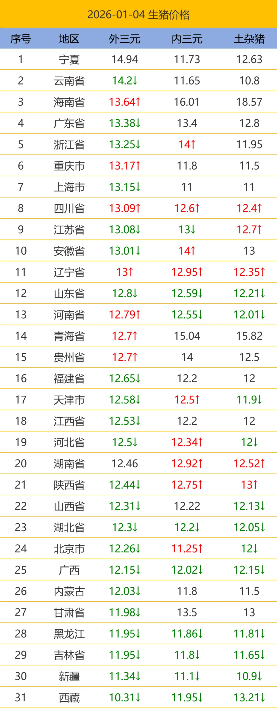 >今日猪价.2026.01.04最新生猪价格/期货猪价