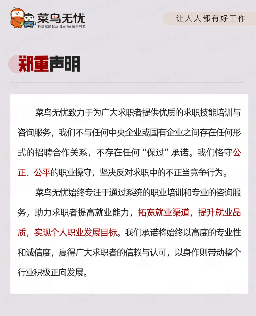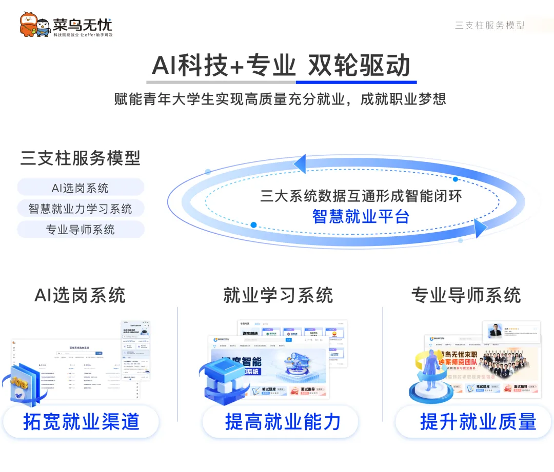 从每日公益直播的精准赋能,到定制化职业课程的体系化输出;从千万级求职案例的沉淀转化,到 “AI + 导师” 双轮驱动的服务模式落地,菜鸟无忧打破了就业指导的时空限制,将优质的求职资源输送到全国超 2000 所高校的学子手中,累计服务超千万毕业生,为求职者开辟了多元就业路径。