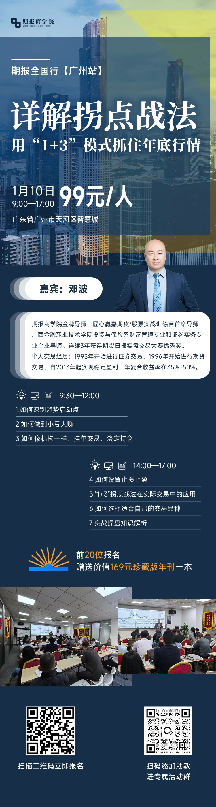 如果你想深入学习“1+3战法”细节,可关注1月10日广州线下课,现场将会拆解更多真实案例,手把手教你搭建专属交易系统。【扫码报名参与2026年1月10日,期报全国行——广州站,前20位报名赠送价值169元珍藏版年刊一本】