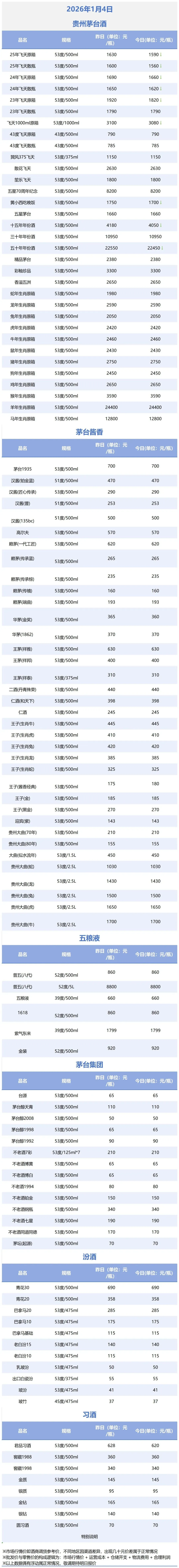 >1月4日酒类今日行情