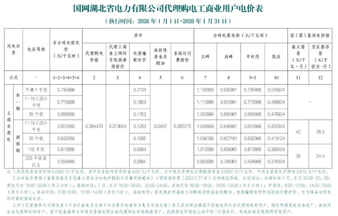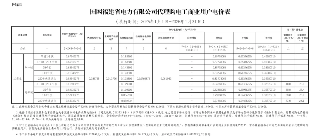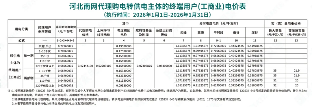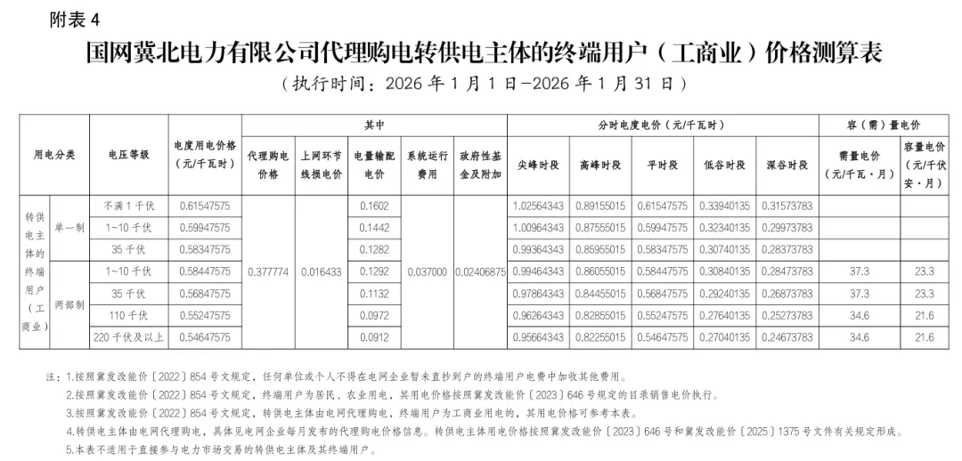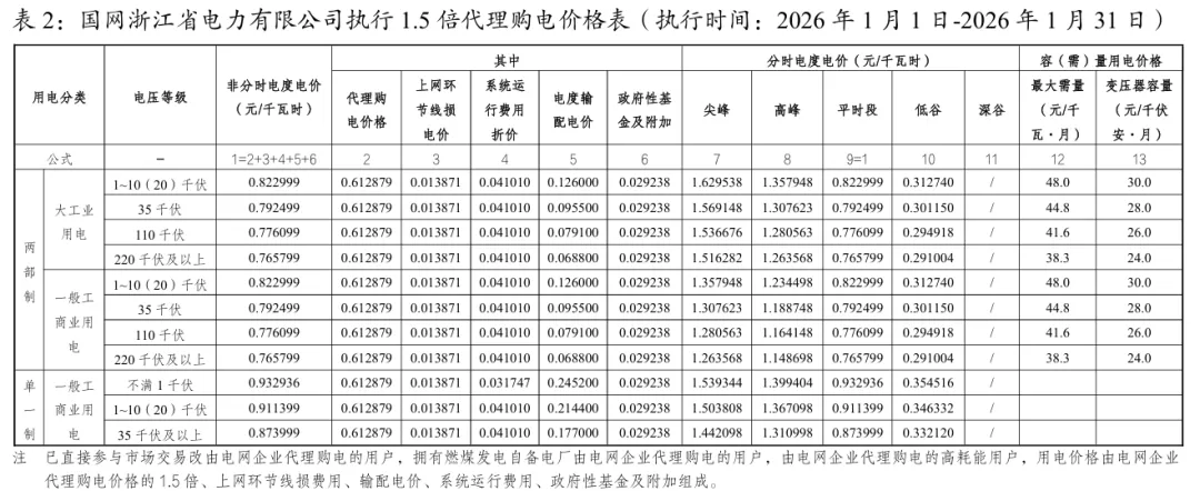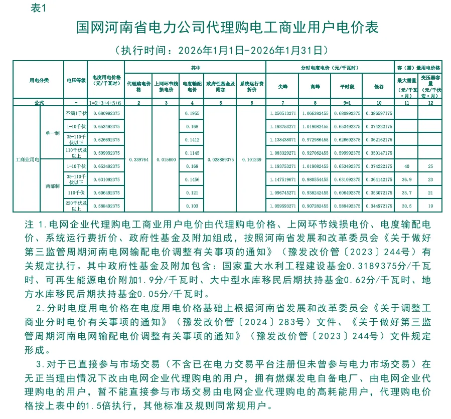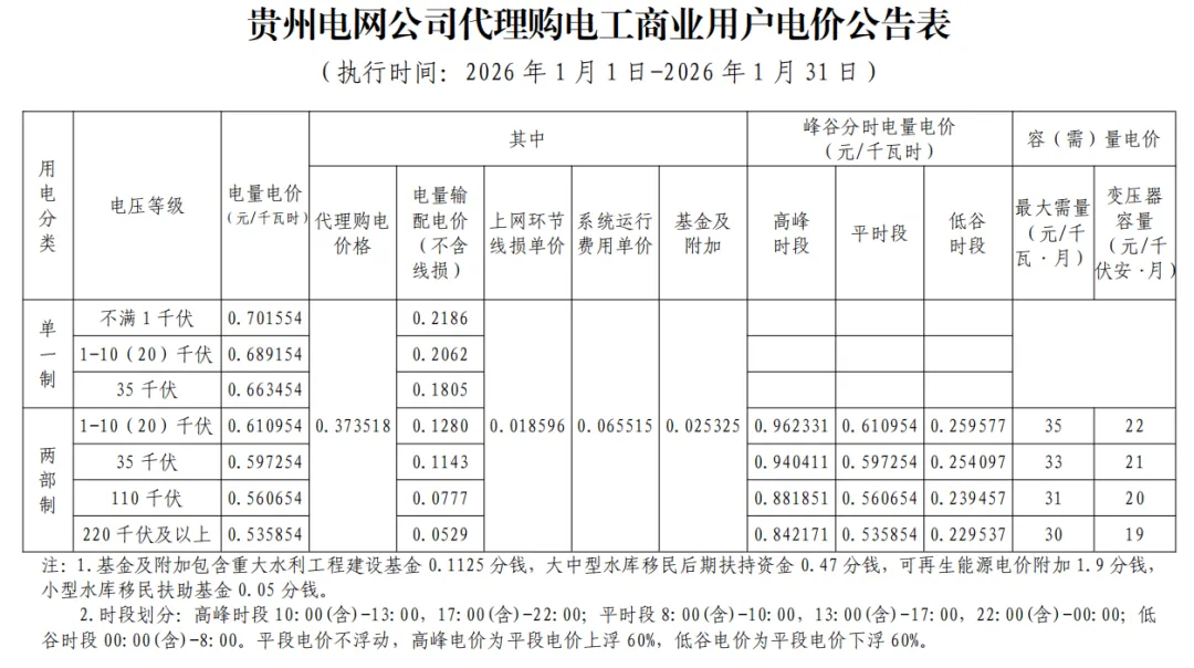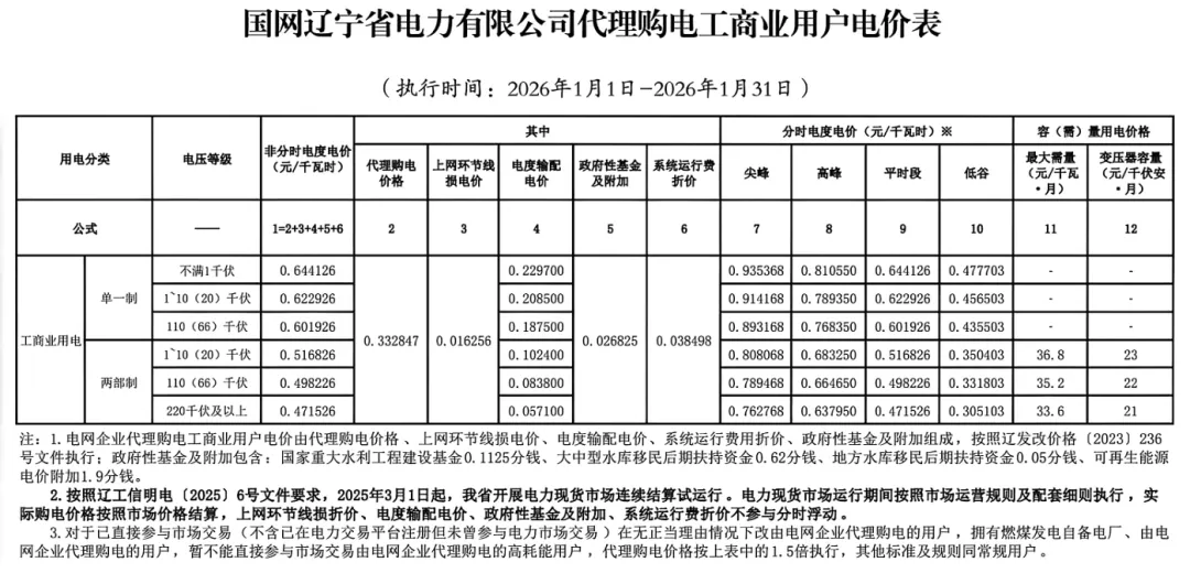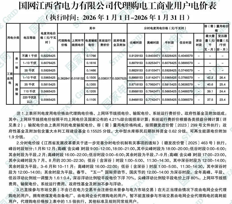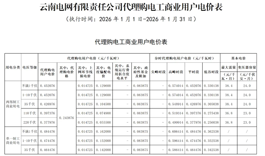日前,2026年1月全国各地公布电网企业代理购电价格。