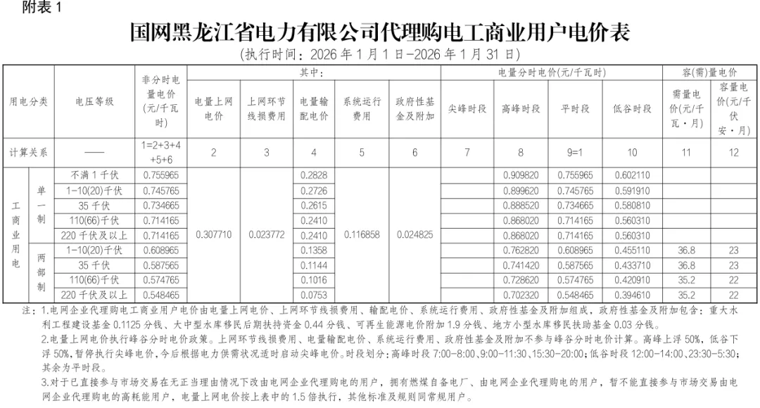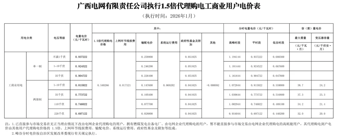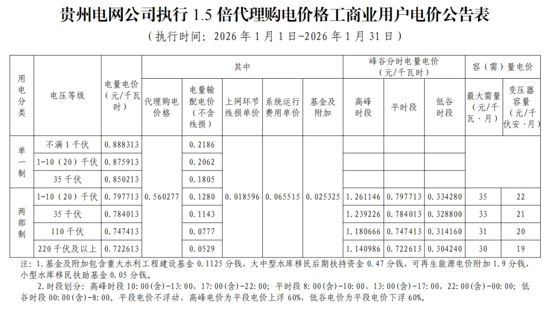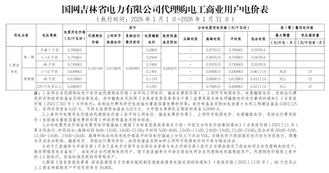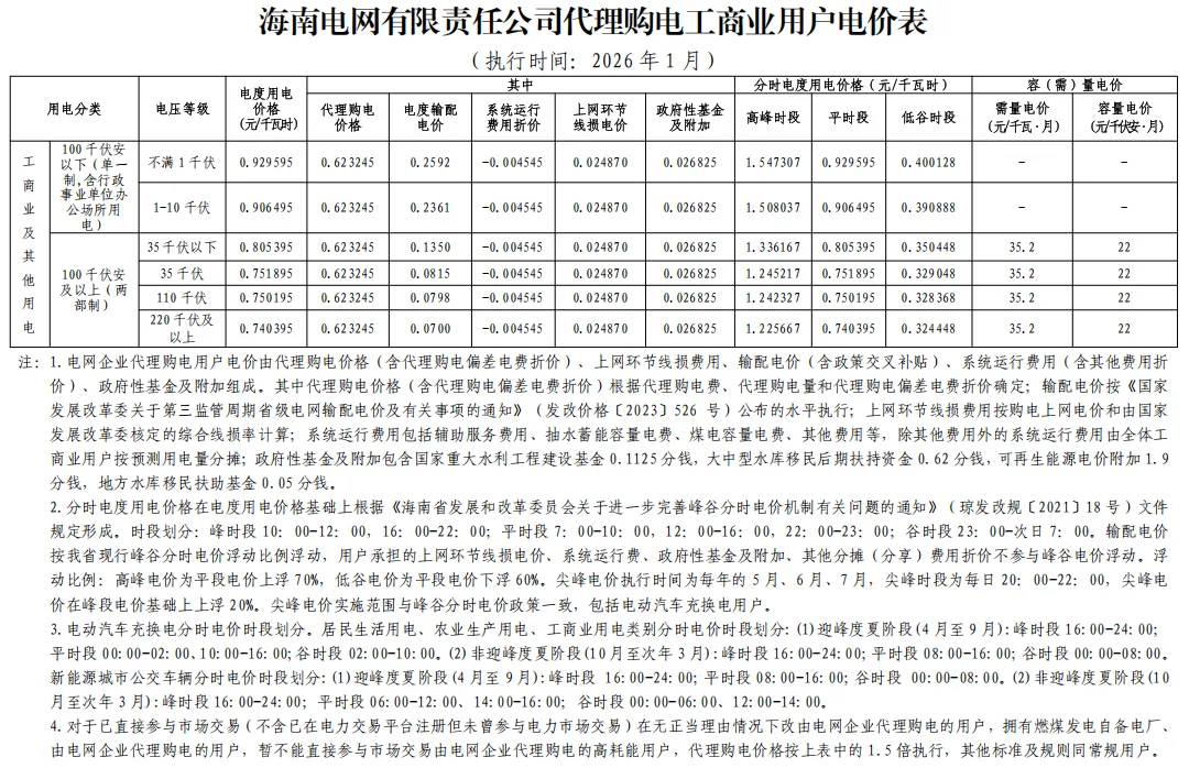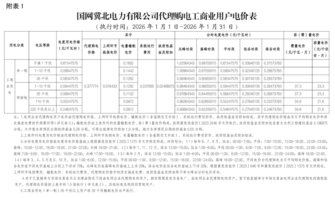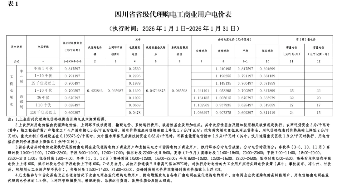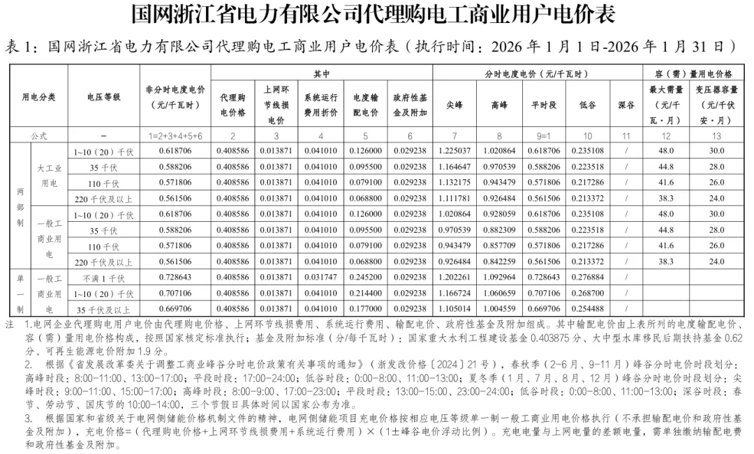 日前,2026年1月全国各地公布电网企业代理购电价格。