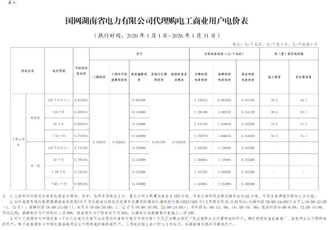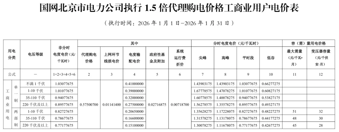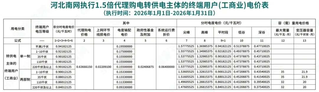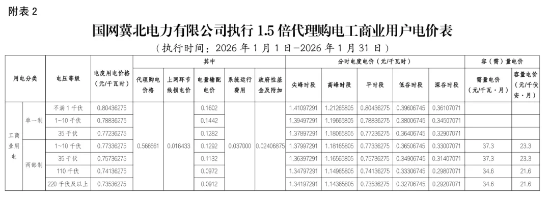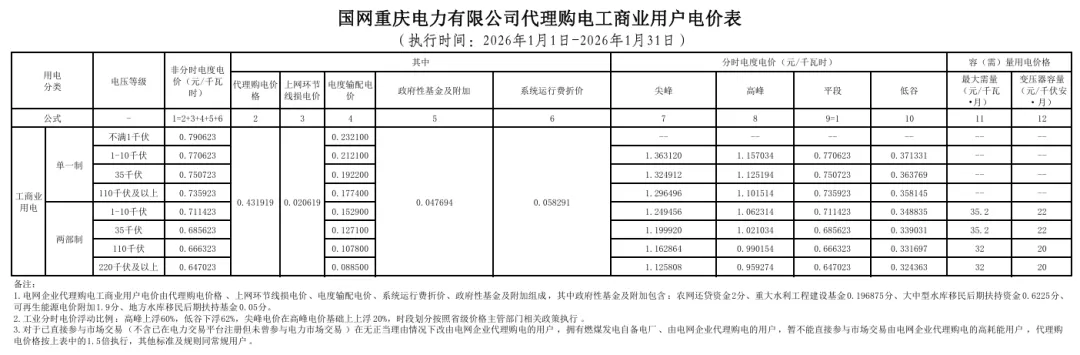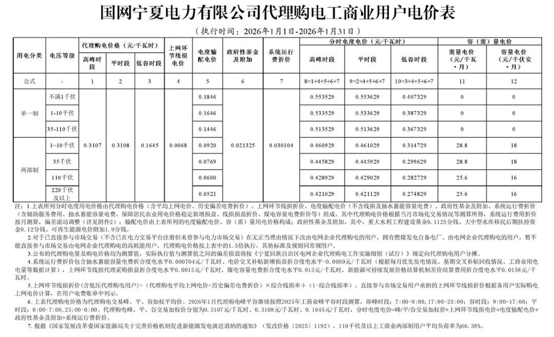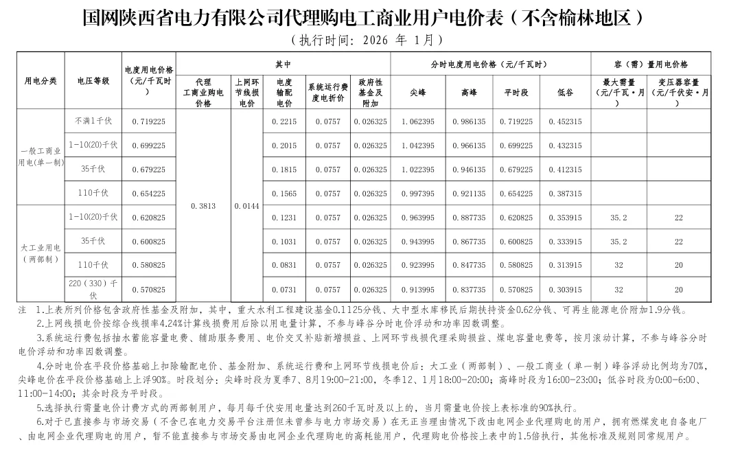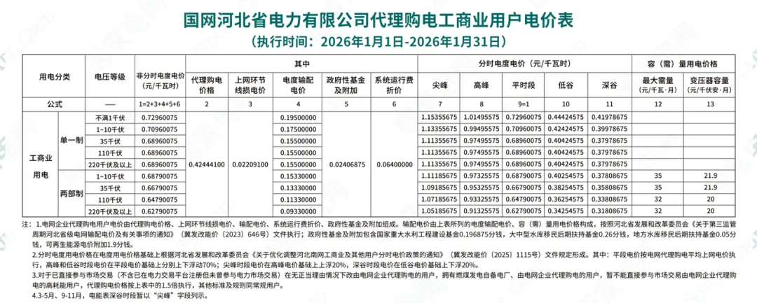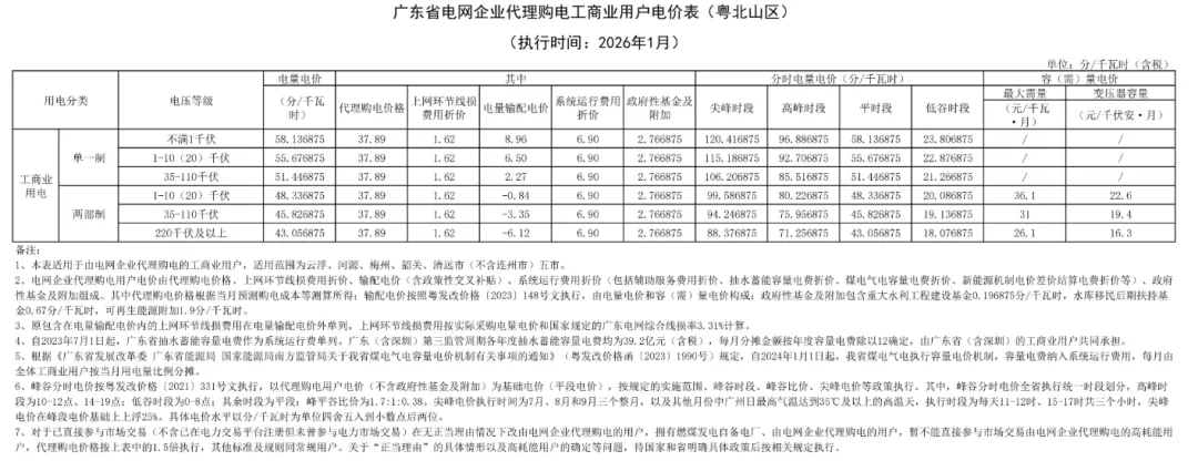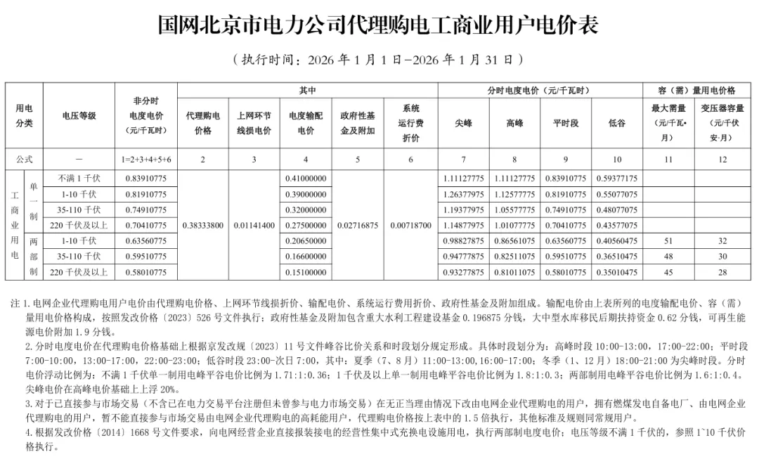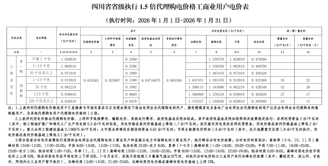 日前,2026年1月全国各地公布电网企业代理购电价格。