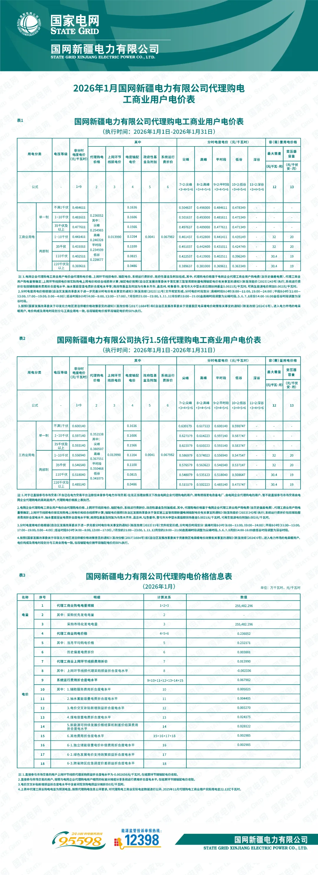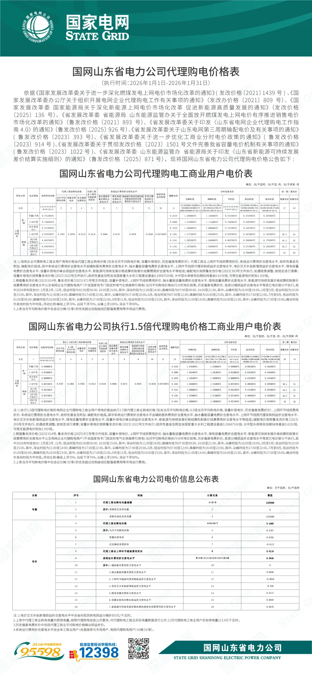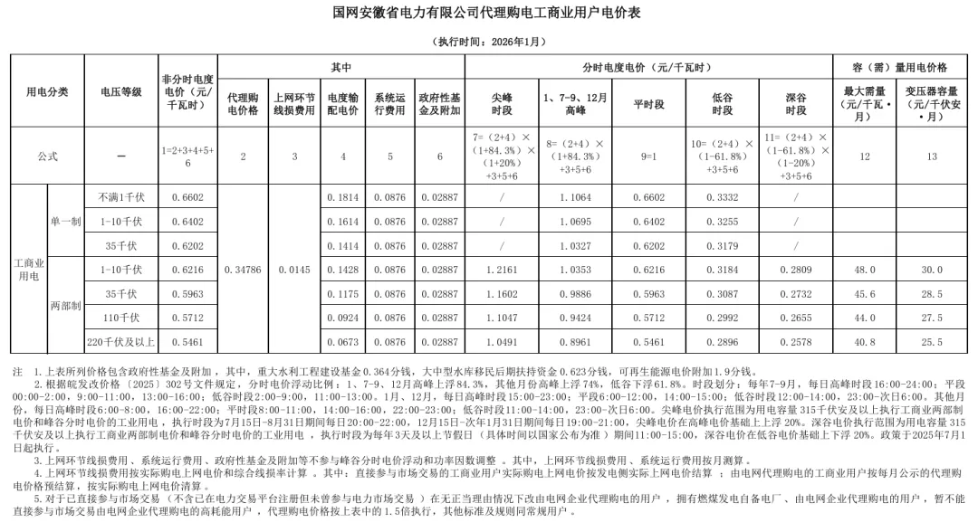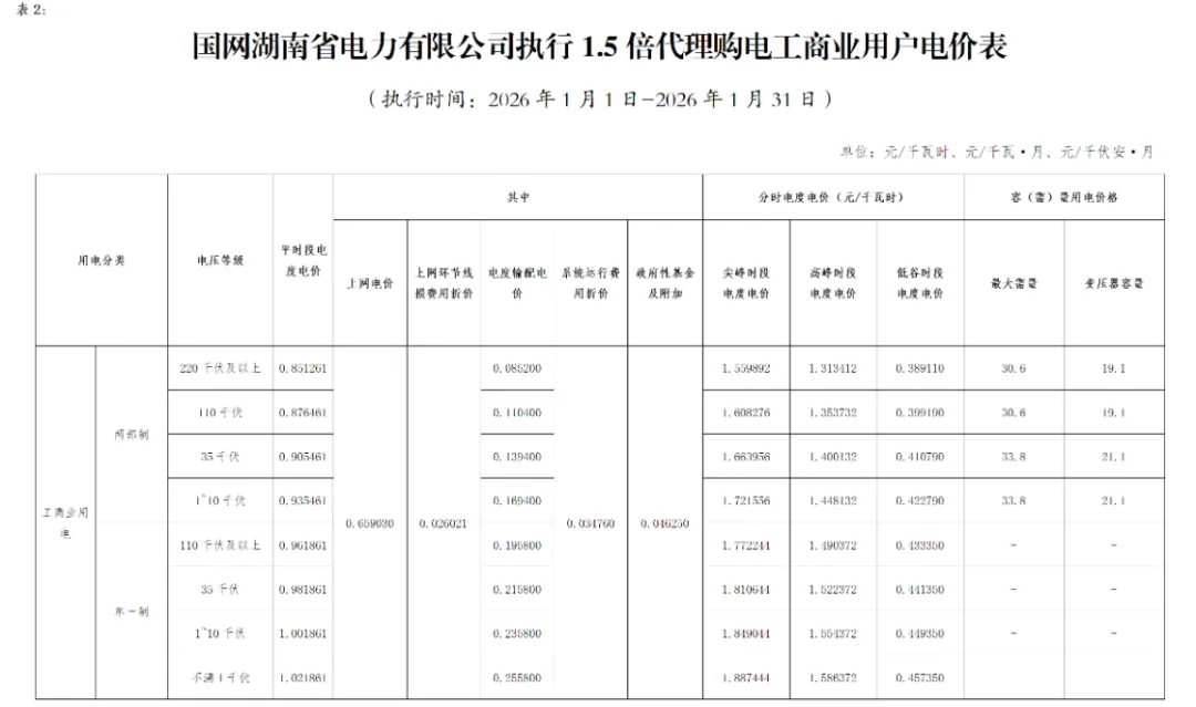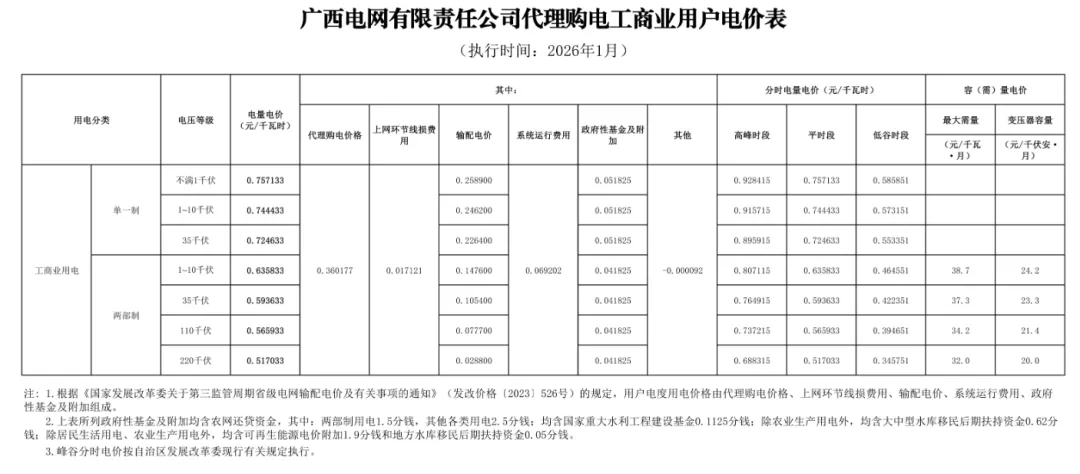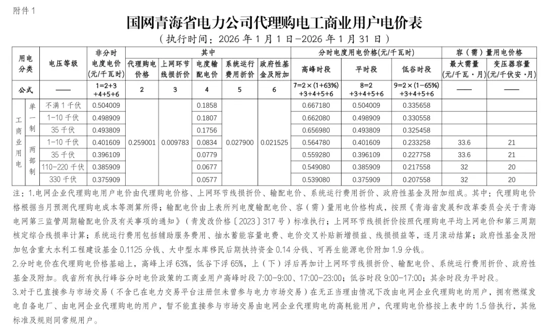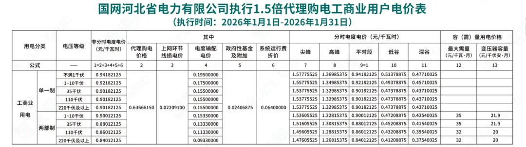 日前,2026年1月全国各地公布电网企业代理购电价格。