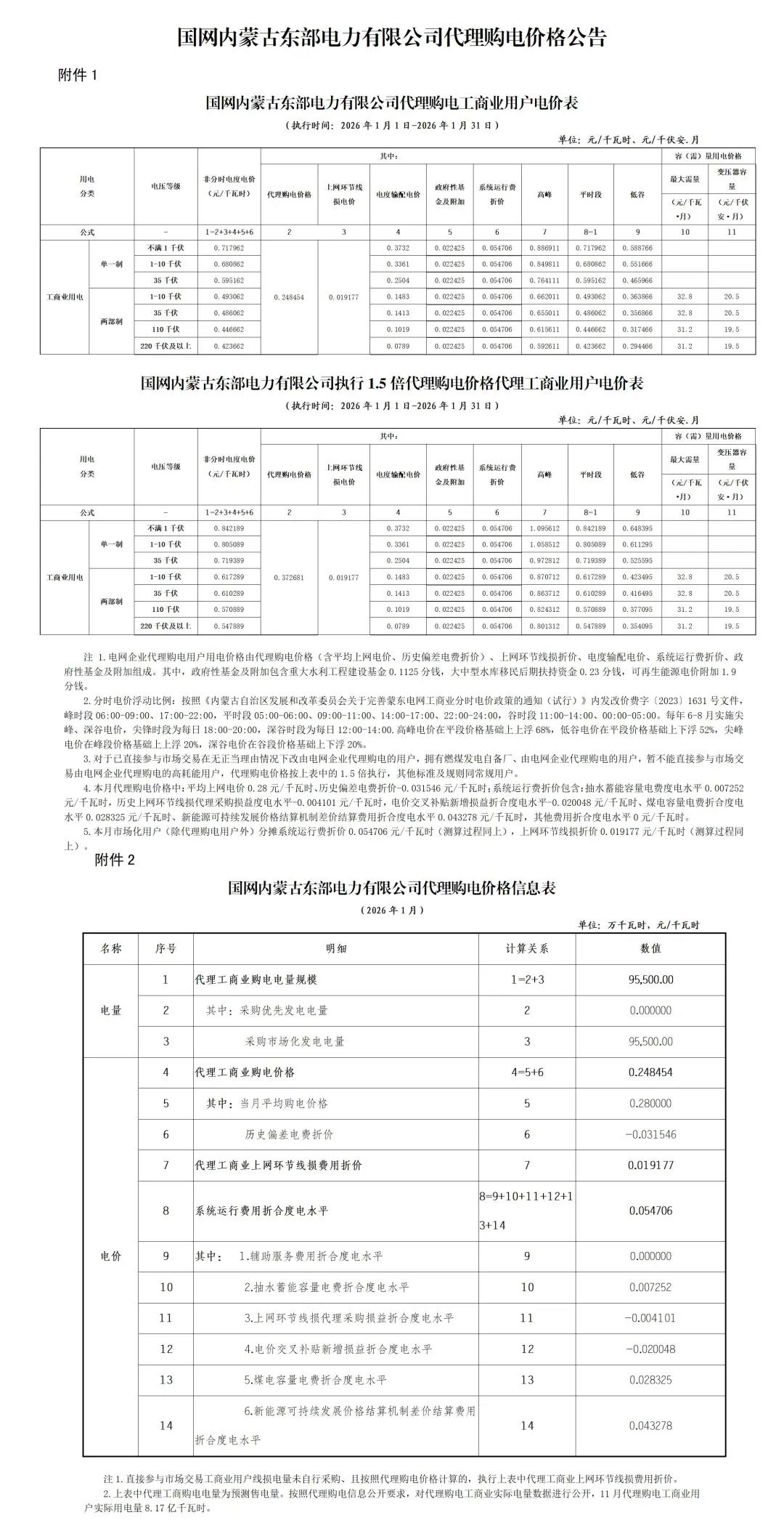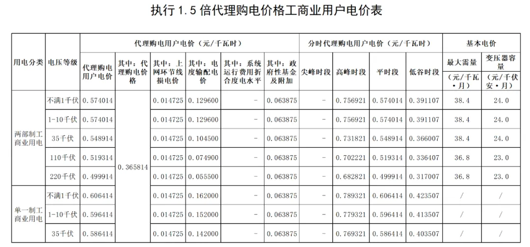 各地代理购电工商业用户电价详情: