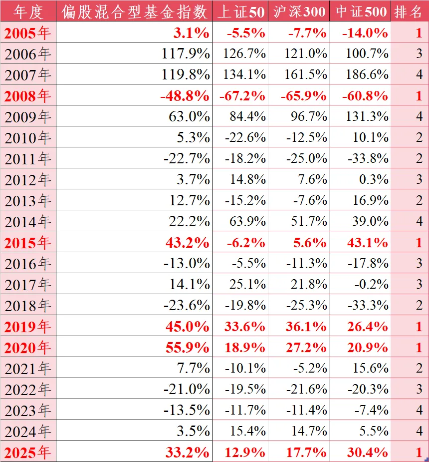 2025年12月,中国证券投资基金业协会下发了《基金管理公司绩效考核管理指引(征求意见稿)》。2005年以来,仅有2025、2028、2015、2019、2020、2025,6个年度战胜市场(上证50、沪深300、中证500)的公募基金经理们,寒潮来了。