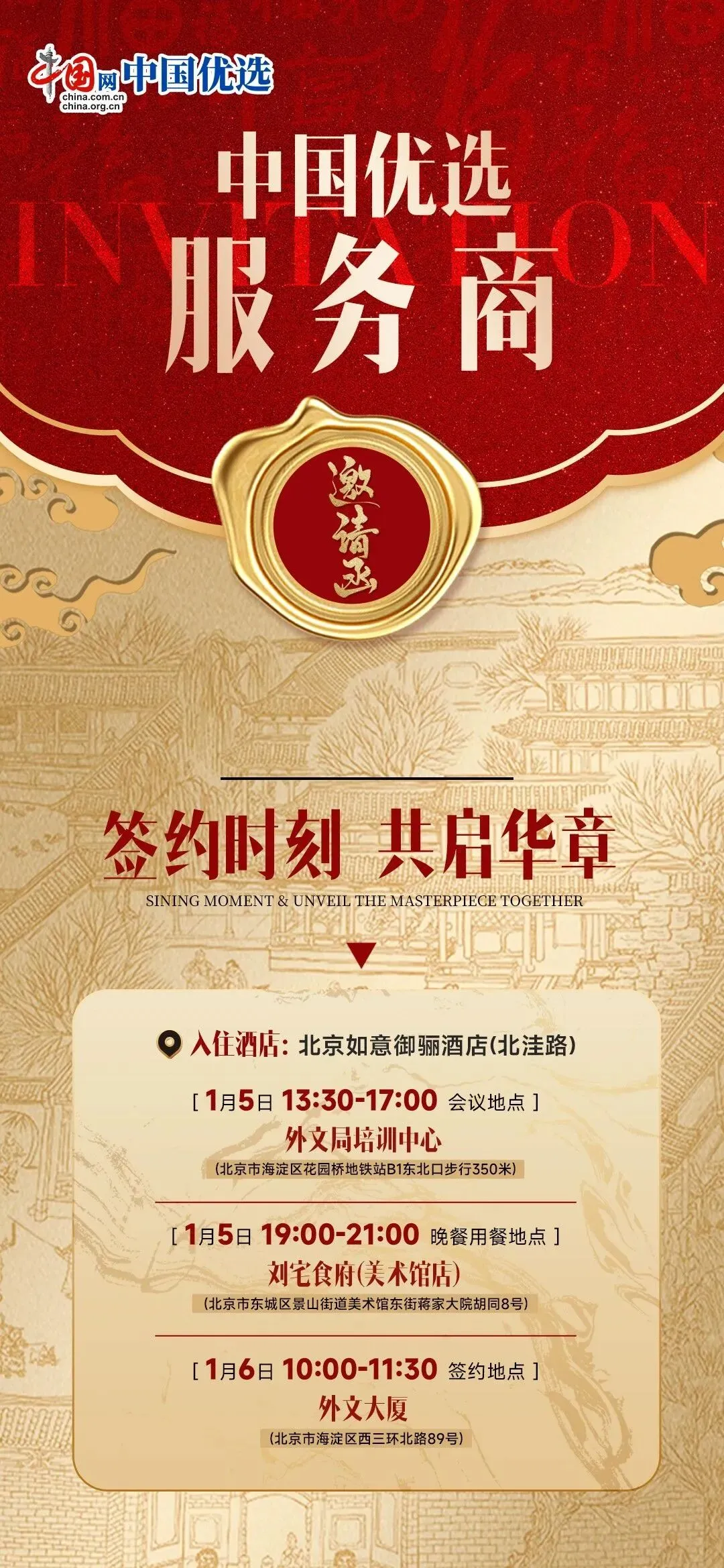 中国优选首批服务商签约仪式定于1月5日,于中国网北京总部盛大举行