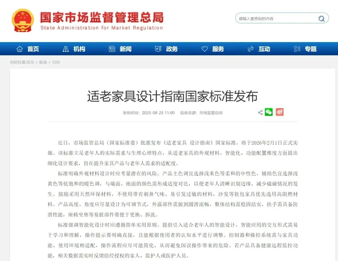 多项国标的落地与发布,形成了覆盖特殊人群需求、核心材料环保的标准体系。适老化国标的实施,精准回应了人口老龄化社会的家居需求,为企业研发提供明确指引,推动专业化银发家居市场加速成型;而人造板甲醛释放新国标,则通过加严环保要求、规范检测方法,倒逼企业升级生产工艺与环保材料应用,不仅能更好保障消费者室内环境健康,也有助于提升我国家居产品的国际竞争力,为行业高质量发展筑牢标准根基。
