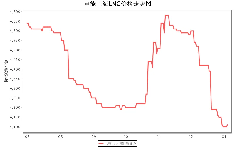 >申能上海LNG价格:1月5日上海五号沟站出站价格4110.00元/吨
