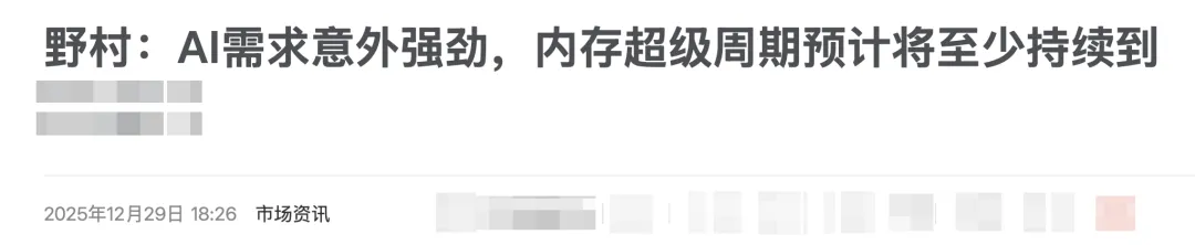 不仅高带宽内存(HBM)需求持续旺盛,通用型DRAM在AI服务器和传统服务器领域的需求也在2026年呈现出爆发式增长态势。这促使客户开始采取预防性采购策略,从而推动供应商的提价幅度超出了野村此前的预测。