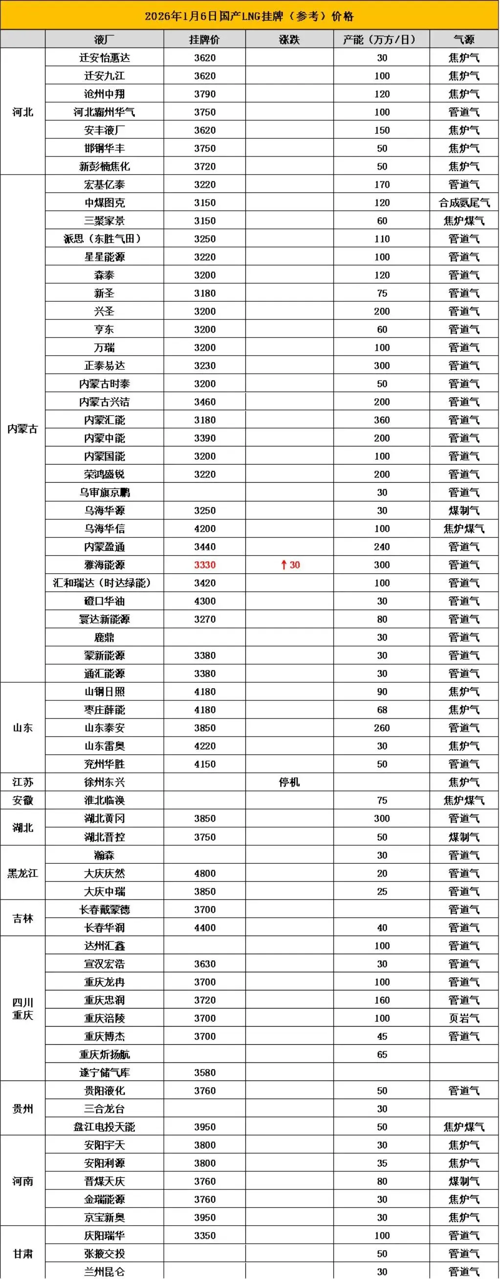 【2026年1月3价格行情】出货不畅,LNG跌势难止