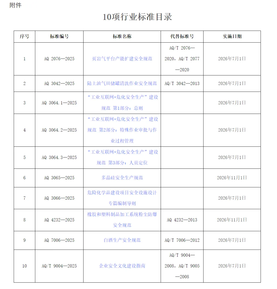 附件:10项行业标准目录