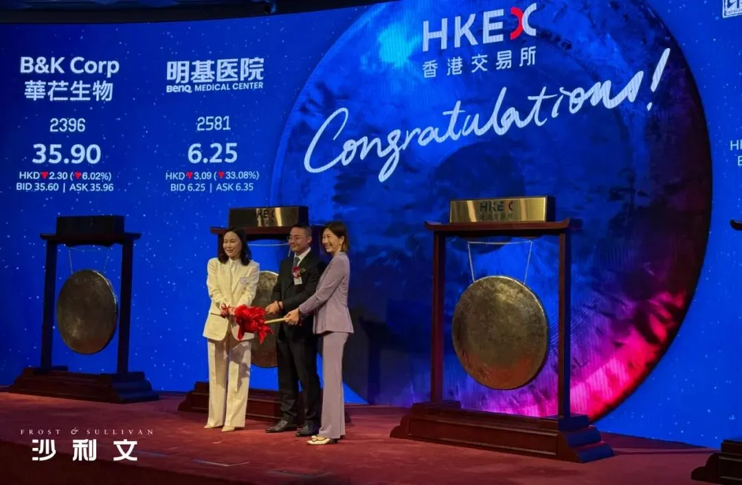 12月22日,港交所再现四锣齐响盛况。独家行业顾问沙利文热烈祝贺南华期货(2691.HK)、明基医院(2581.HK)、华芢生物(2396.HK)、印象大红袍(2695.HK)成功在香港证券交易所挂牌上市!