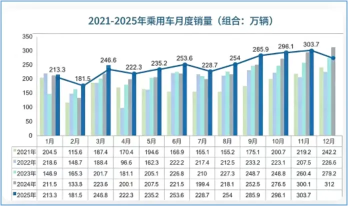 2025年11月,乘用车产销分别完成314.4万辆和303.7万辆,同比分别增长1.1%和1.2%。1-11月,乘用车产销分别完成2738.8万辆和2725.6万辆,同比分别增长12.0%和11.5%。汽车方面,2025年11月,我国汽车产销分别完成353.2万辆和342.9万辆,环比分别增长5.1%和3.2%,同比分别增长2.8%和3.4%;1-11月,汽车产销累计完成3123.1万辆和3112.7万辆,同比分别增长11.9%和11.4%。我国汽车产销量已连续16年稳居全球第一。中国汽车工业协会的数据显示,2024年全年,我国汽车产销量分别为3128.2万辆和3143.6万辆。其中,新能源汽车产销量双超1200万辆,新能源汽车新车销量占汽车新车总销量的40.9%。