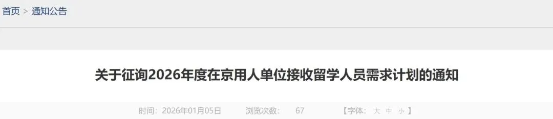 1月5日,教育部留学服务中心发布通知,启动2026年度在京用人单位接收留学人员的需求计划征询工作。申报工作将持续至1月25日,符合条件的备案单位需通过就业落户系统在线提交相关材料。