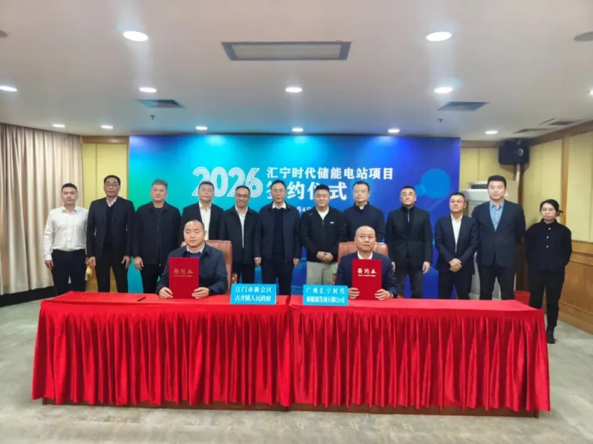 1月4日,汇宁时代储能电站项目签约仪式在广东江门市新会区举行。新会区古井镇政府与广州汇宁时代新能源发展有限公司正式签署合作协议该项目计划总投资45亿元,将建设成为全国单体规模最大、接入500千伏电压等级的电化学储能电站。项目选址古井镇,拟用地面积约219亩,在500kV圭峰站东侧建设一座1300MW/2600MWh电化学储能电站和相关配套,实现达产并稳定运营后预计年营收4.8亿元。